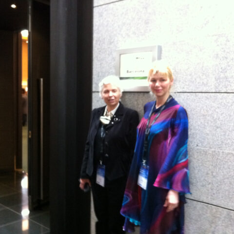 Kuvat: Tiina Karu WCLI-konferenssissa toukokuussa 2012 Barcelonassa luennon jälkeen.